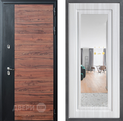 Входная Дверь Дверной континент ДК-15 Красное Дерево ТЕРМО ФЛЗ Зеркало Сандал белый 860x2050 мм